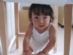 最近は椅子の下に入るのがお気に入り。頭を強打して、泣くこともしばしば。