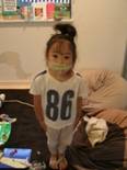 自分で意気揚々とテープ貼ってました。